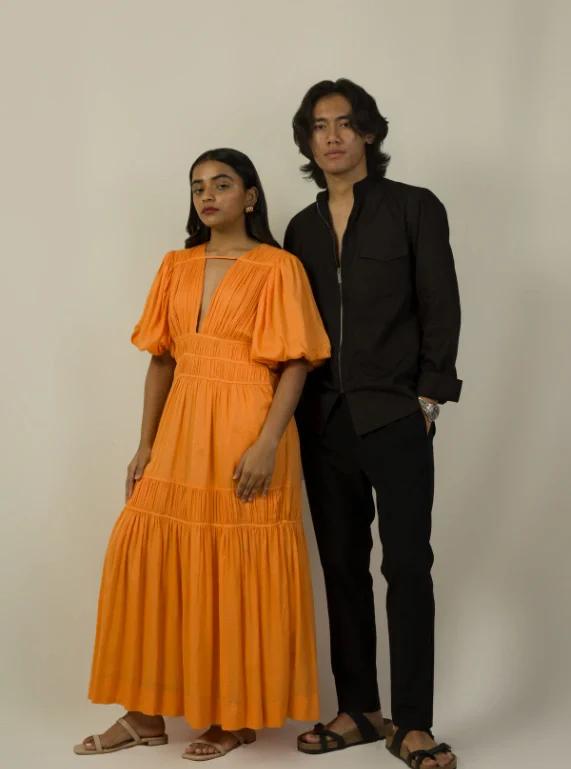 Rustic Modernism harmoniously merges the dynamic essence of contemporary trends and bold energy of modern living with the serenity, relaxed charm and inviting allure of a rustic lifestyle. This new trans-seasonal collection celebrates the hearty tones of the earth while blending influences of global advancements and inspirations with nature’s whispers. Each gather and pleat detail reflects the overlapping of cultures, subtle sensibilities and a rich aesthetic, embraced into a garment.
