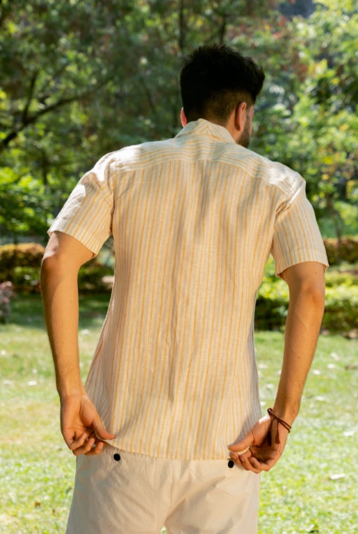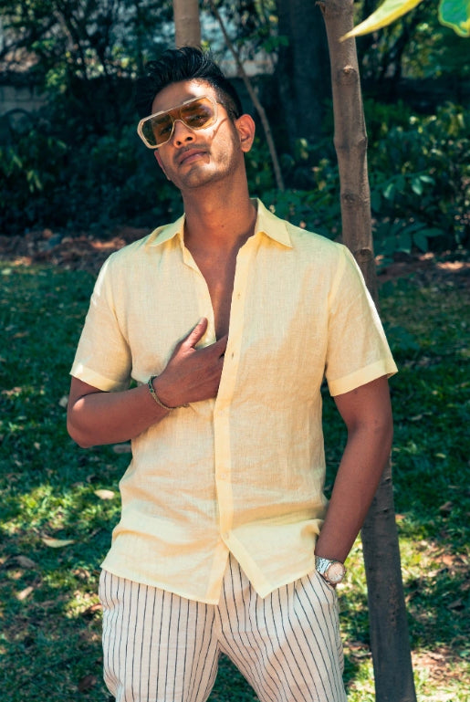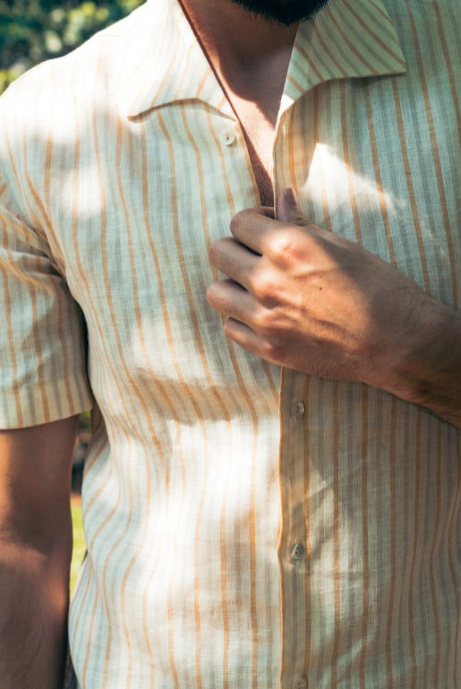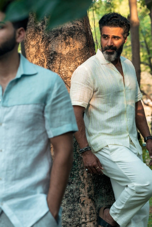 Weaving  together super fine linen and the soft goodness of tencel for a breathable, relaxed feel, these comfort pieces embody the play of light and shadow, evoking memories of sunlight filtering through a forest.