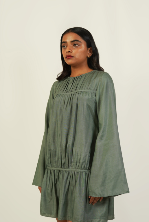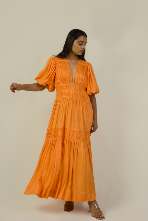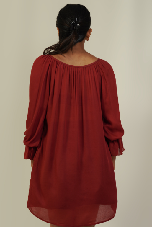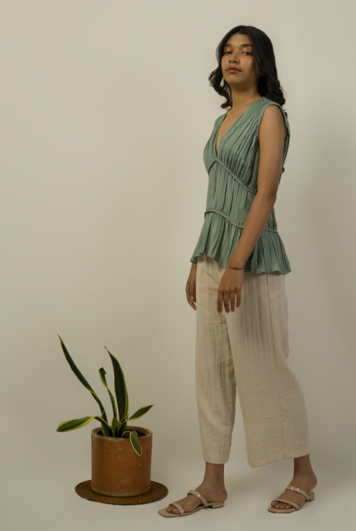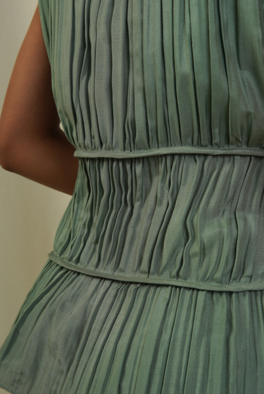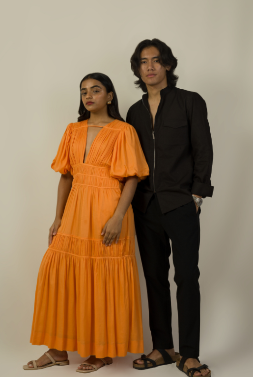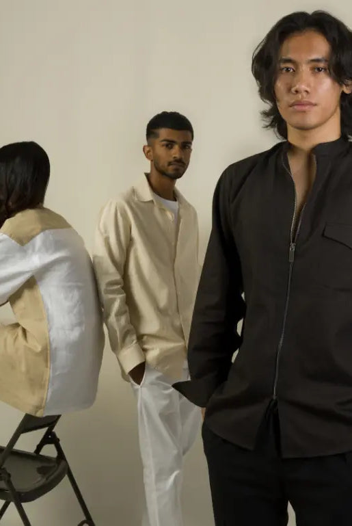 Rustic Modernism harmoniously merges the dynamic essence of contemporary trends and bold energy of modern living with the serenity, relaxed charm and inviting allure of a rustic lifestyle. This new trans-seasonal collection celebrates the hearty tones of the earth while blending influences of global advancements and inspirations with nature’s whispers. Each gather and pleat detail reflects the overlapping of cultures, subtle sensibilities and a rich aesthetic, embraced into a garment.