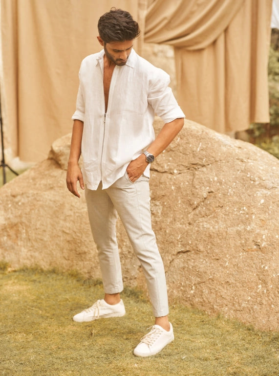 Esta camiseta con cremallera está confeccionada a mano con un tejido elaborado 100 % con lujosa fibra de cáñamo que es perfecta para el uso diario, ya que actúa como protector de la piel contra los rayos UV.