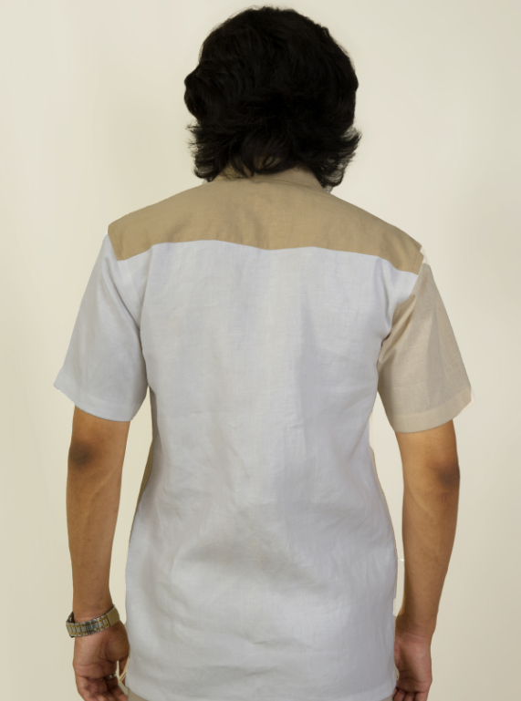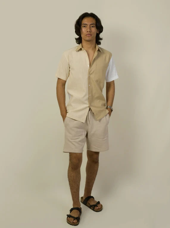 A sustainable masterpiece woven from repurposed organic cotton, hemp, and linen. Each patch narrates a tale of resourcefulness and creativity, creating a distinctive design. Adorned with exquisite mother of pearl buttons, this shirt is your go-to for making a relaxed yet impressive statement. A piece that's multifaceted, just like you!