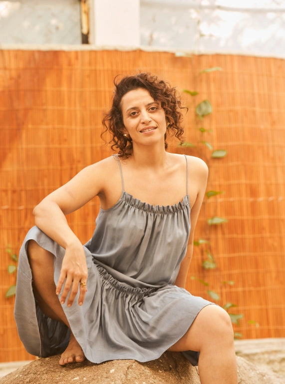 Este vestido de tiras es la solución perfecta para combatir el calor y subir el calor al mismo tiempo. Hecho a mano con una mezcla de cáñamo + algodón orgánico + viscosa
