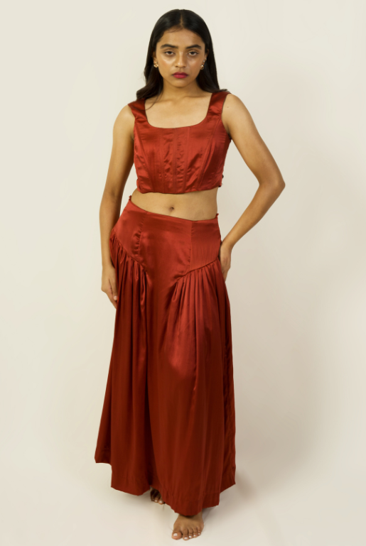 Rustic Modernism harmoniously merges the dynamic essence of contemporary trends and bold energy of modern living with the serenity, relaxed charm and inviting allure of a rustic lifestyle. This new trans-seasonal collection celebrates the hearty tones of the earth while blending influences of global advancements and inspirations with nature’s whispers. Each gather and pleat detail reflects the overlapping of cultures, subtle sensibilities and a rich aesthetic, embraced into a garment.